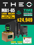 The THEO MA1-Series is a lineup of air-cooled, handheld fiber laser welders revolutionizing the trade with portable precision, minimal heat distortion, and 4x faster welds than traditional methods—ideal for auto repair, metal fabrication, and industrial maintenance. All models feature a 5.6m fiber cable, 0-4mm wobble width for seamless joints, and a 2-year warranty, with a separate T1 wire feeder available for automated filler applications. Built for durability and ease, the series starts at entry-level power and scales to heavy-duty penetration, making it the go-to for laser collar pros seeking reliable, shop-ready tools.